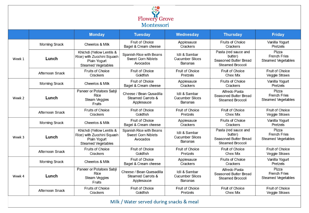 - Morning songs, stories, movement, and grace and courtesy lessons