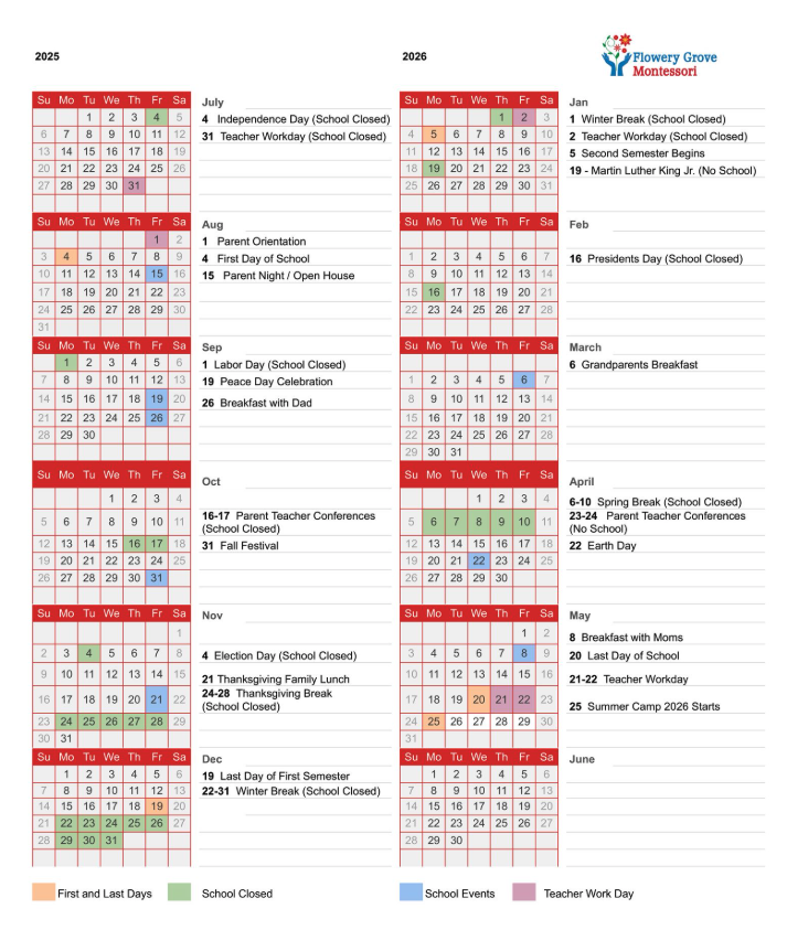 Everything you need to plan your family's year at Flowery Grove.